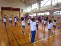 昨日の写真になります。全校で、運動会のダンスの動きを合わせていました♪