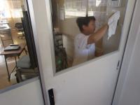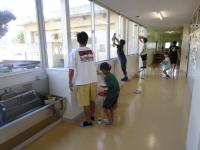 親子奉仕作業が始まっていました♪ 校舎内の窓ガラス拭きです。