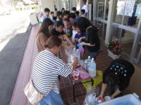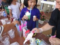保護者のみなさんの手作りのトロピカルジュースをいただいています。
