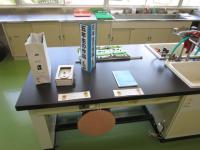 1階の理科室が、作品展の会場です。いってみると子供たちの作品がズラリ♫