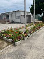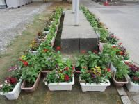 今日の午後から、(株)カインズさんのご支援を得て、「花苗の寄せ植えプロジェクト」を行いました。