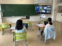 今日の1時間目と2時間目に、3,4年生が、兵庫県の楠丘小学校(くすがおか)の子供たちと