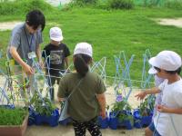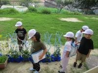 このプランターは、すでに百日草が植えてあるプランターのそばに一緒に置いてお世話を続けます。