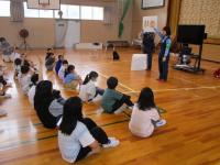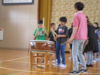 今朝は、なかよし集会でした。全校の子供たちが学年に関係なく