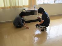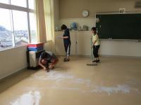 学校に来る途中、運転しながら様子をうかがうと、家の中にたまった泥の掃き出し作業や