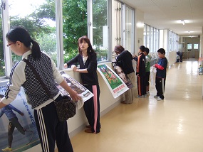 学校の両側の窓を拭いたり、雨や風などで溝に落ち葉やごみがたまって、排水の悪くなっているところを掃除したりしました。大変な作業の中にも笑顔もあり、和やかにそうじをすることができました。