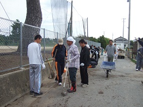 6時30分から蛸島小学校の児童と保護者の方々で学校の周りをきれいにそうじしました。