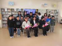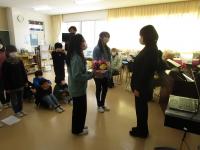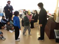 お世話になった4人の先生方とお別れです。子供たちは花束を手渡しながら