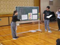 今朝の集会では、先生方が子供役になって、授業中の「考えの説明の仕方」や