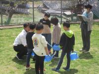 昨日に続いて、今日も3年生が外に出て理科の学習をしています。