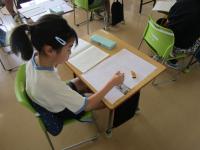 さて、教室内を見ると、もくもくと自分一人で書きまとめている子、