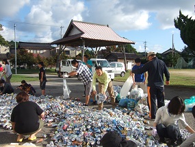 今日の7時30分から地域の方々や保護者の方々に集めていただいた空き缶、空き瓶を回収して児童と一緒に分別しました。