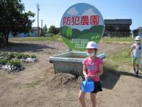 6月24日、1年生が、防犯農園で栽培しているさつまいもに、水やりをしました。