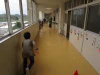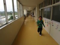 運動場を使うことができない蛸島小では、ろうかが一番長い直線コースです♪ ろうかを全力疾走(笑)♫