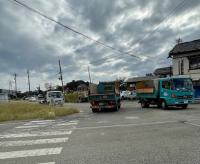 蛸島町の解体家屋にも、解体業者さんのトラックや重機がたくさん入っています。