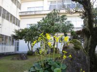 今日の昼休みは、学校の周りをグルリと一周♪中庭では、校務員の宮野さんが「雪つり」の作業の真っ最中です。