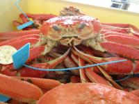 おいしいね、みんな♪ 底引き網船団のみなさん、カニを塩茹でしてくださった