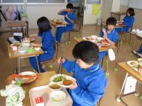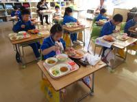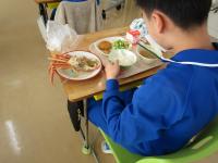 給食時間になりました。待ちに待ったカニとの対面です(笑)。