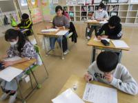 掃除の時間が終わると、子供たちは、自分でプリントを選んで
