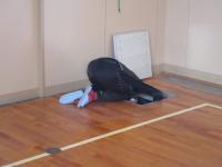 地震でゆがんだ、体育館の床面の矯正工事のため、
