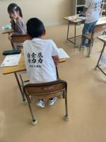 3年生の数人が、蛸島小の児童と教職員の合言葉「自力、全力、底力」のTシャツを着ています(笑)。