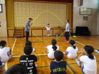 今日は、蛸島小学校の子供たちに「ダブル・ダッチ」を紹介・体験のために