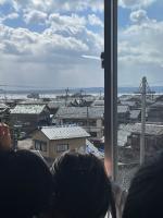 お昼休み、子供たちと一緒に校舎3階の窓から、