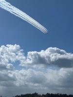 ブルーインパルスの激励飛行を一目見ようと待ち構えていました(笑)。