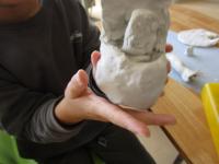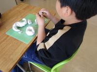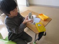 2年生が、図画工作の時間にねん土をこねたり丸めたり、伸ばしたりと