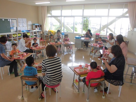 学校での給食を各教室でお家の方と食べることができ、子どもたちはいつも以上に楽しく給食を食べていました。