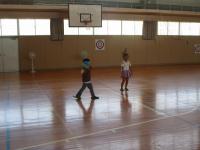 体育館が開いていることを伝えると、おばあちゃんと一緒に体育館へ♪