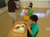 子供たちは、箸の持ち方に気を付けながら、おいしそうに給食を食べていました♫
