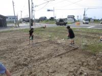 蛸島小の子供たちと先生方は、ジョロやバケツを手にして、水やりです。