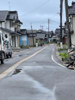 今朝の子供たちの登校の様子です。倒壊して道路をふさいでいる家はなくなりました。