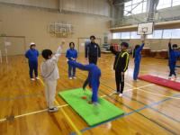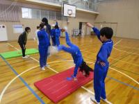 このあいだは5,6年生が、今日は、1,2年生が、体育の時間に「器械運動」の学習をしていました。
