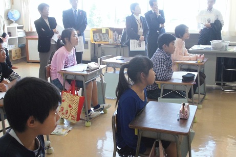 たくさんの参観者の前で児童もはりきって学習に参加していました。