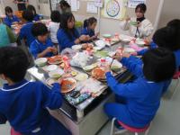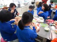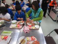 いよいよ給食です♬ 子供たちは、かにの身のむき方や取り出し方に苦戦しています(笑)。