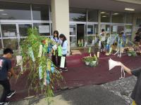 玄関前と仮設住宅前の2か所に七夕飾りが風になびいています♪