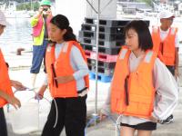 5,6年生がタイの幼魚の放流に、蛸島漁港へ行ってきました。これは市内の業者さんが