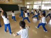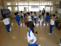 1年生と2年生が、鼓笛パレードで披露するダンスの練習を