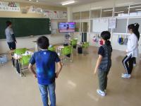 5年生・6年生が教室で運動会で披露する全校リズムの