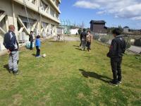 青空の下、子供たちや先生方は、外に出てボール遊びや日向ぼっこを楽しんでいます♪