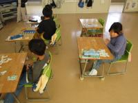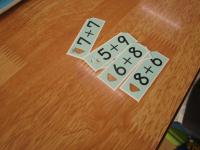 1年生が算数の時間に、たし算カードを使って、数の合成の規則性について