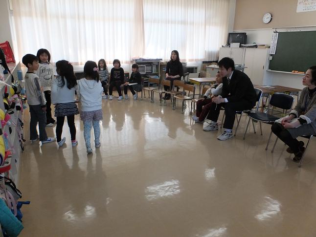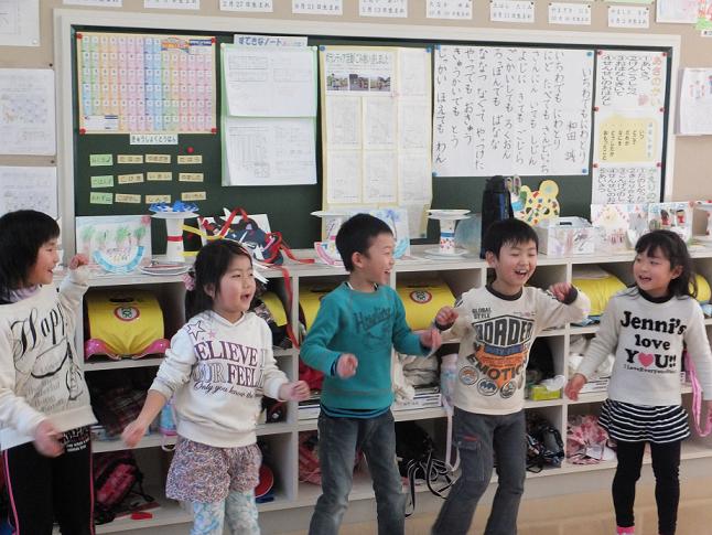 1年生の子どもたちが職員室に来て、空いている先生方を教室にくるよう誘ってくれました。ついていってみると、「おむすびころりん」の劇をみせてくれました。みんな元気に、楽しそうに歌ったり、踊ったり。見ている方も笑顔になりました。子どもたちも先生方に褒めてもらって嬉しそうです。