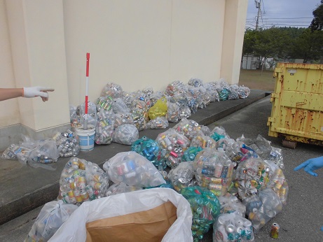 朝早くからみんなで一生懸命、アルミ缶とスチール缶の分別作業を行いました。