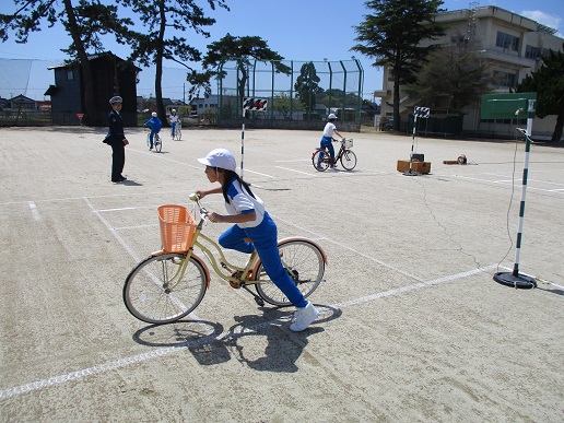 その後、珠洲警察署の方をお招きして、交通安全教室を行い、自転車に乗るときや道路を歩くときの交通ルールを学びました。