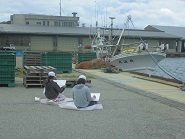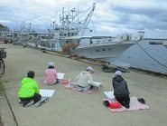 天気が心配でしたが、出かけるころには雨も上がり、みんな思い思いに船を描きました。