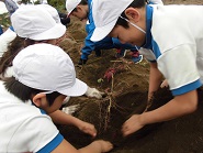 10月12日(木)午後から5月に願いを込めて植えたサツマイモをいよいよ掘り起こしました。