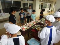 給食時間に子供たちに食べてもらいました♪ 味はどうだったのかなあ。(笑)