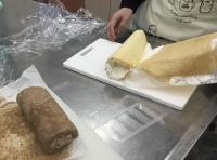 今回はロールケーキ作りに挑戦しました。これまでで、一番難易度が高いレシピでしたが、卵白の泡立てが上手くいったのか、キメが細かい生地に焼き上がりました。生クリームとチョコレートクリームの2種類の味を楽しむことができました。